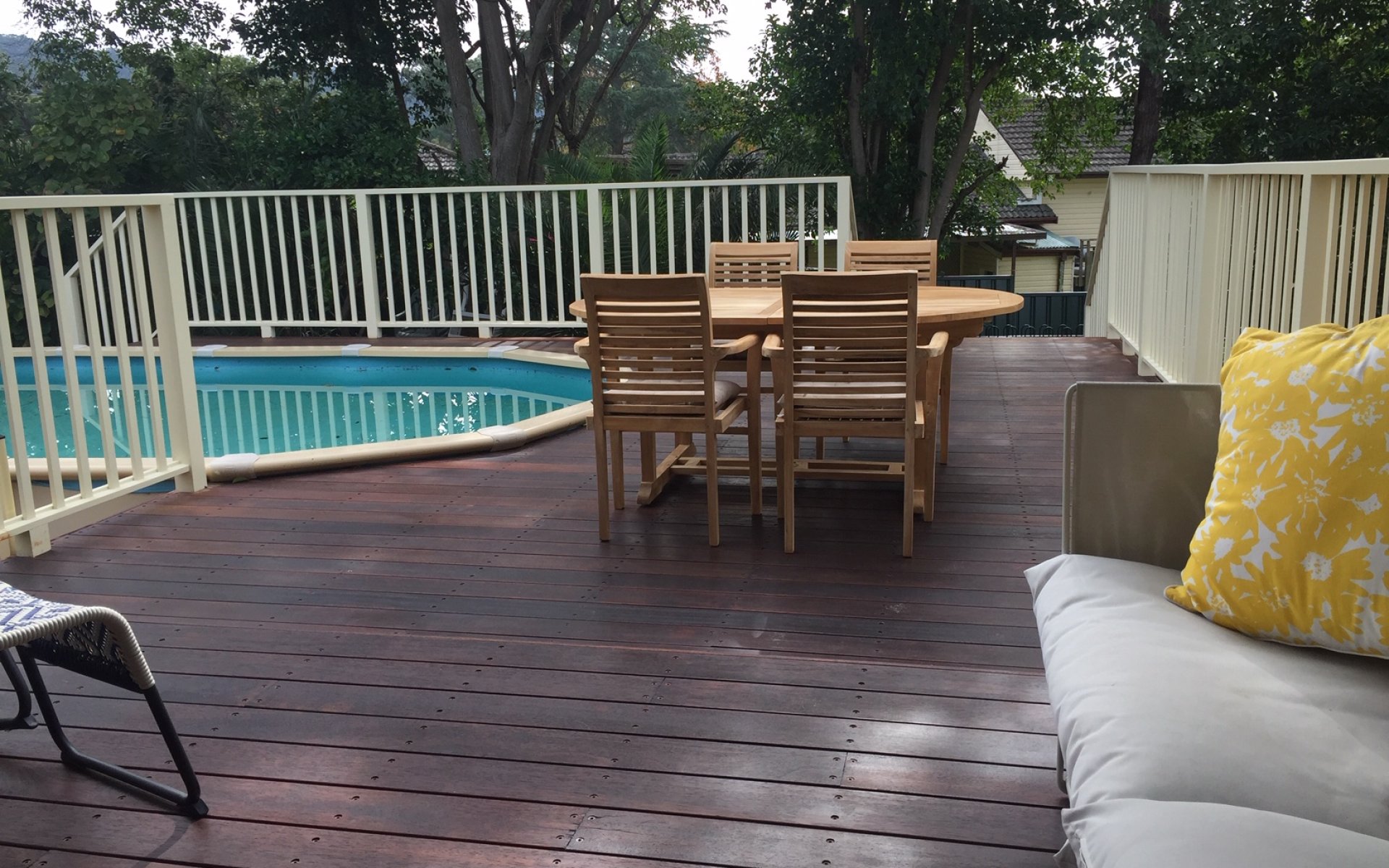 - New Merbau deck to backyard and pool area, incorporating above ground pool