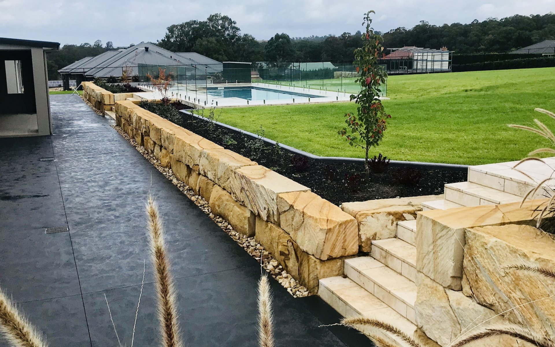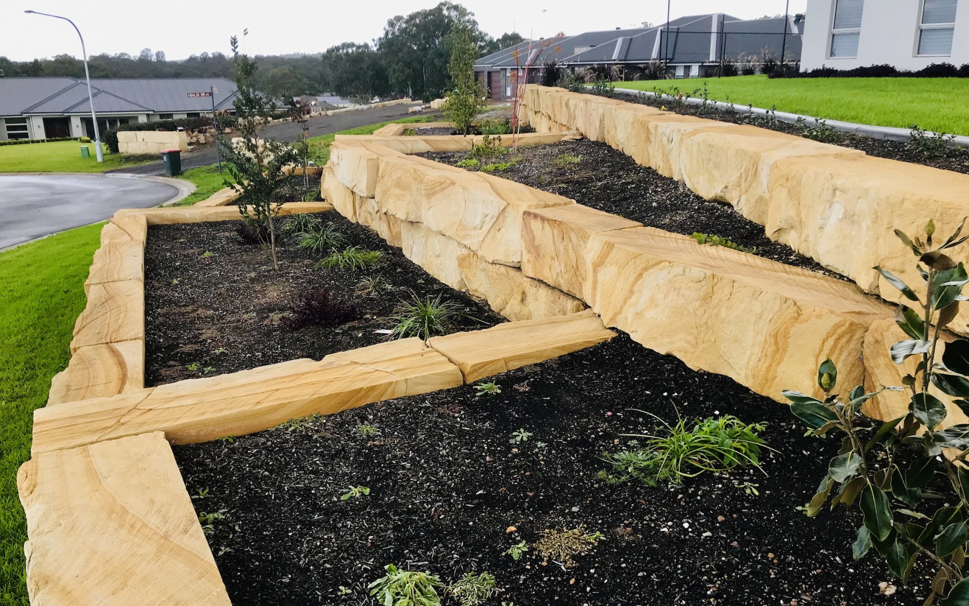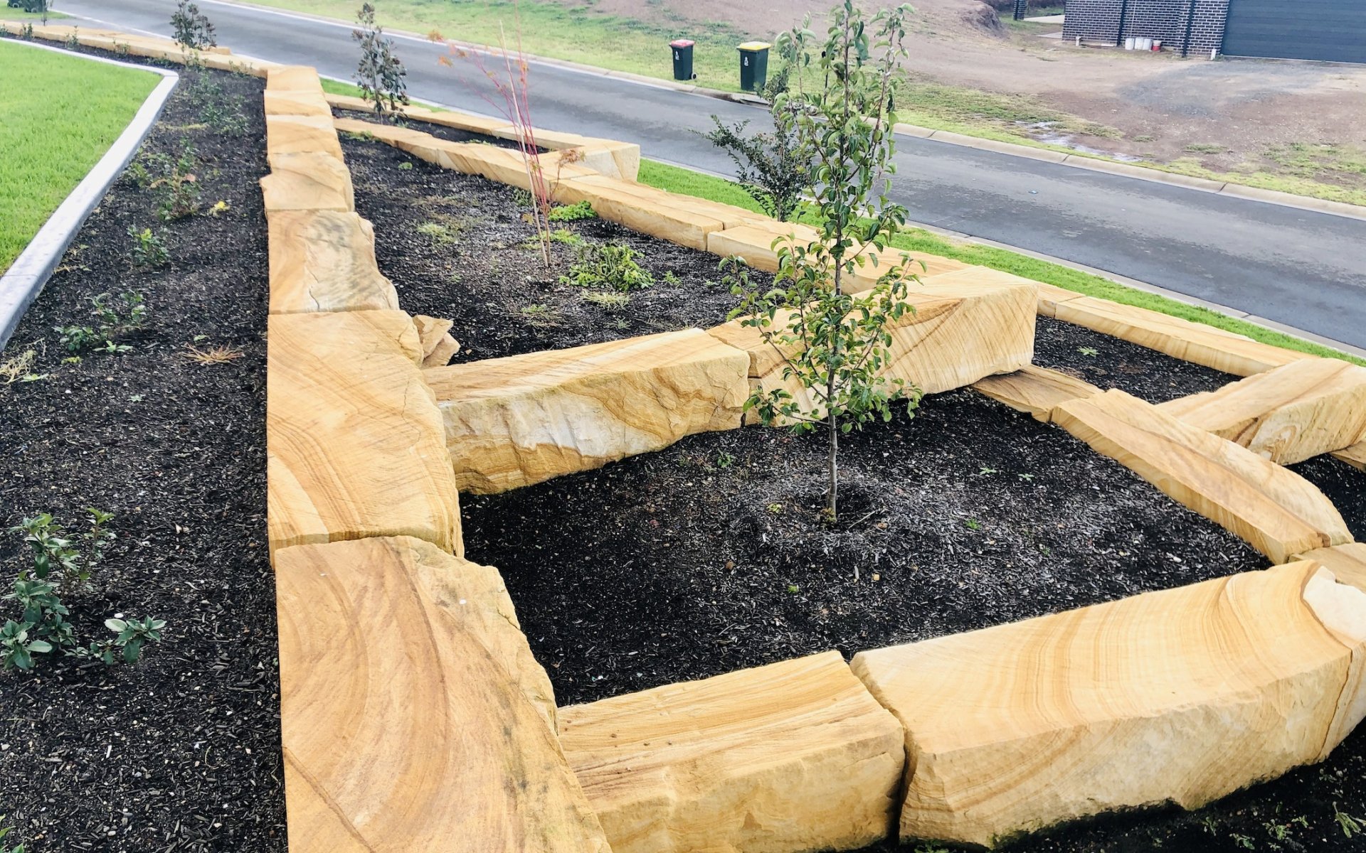 - Feature Sandstone log retaining wall
