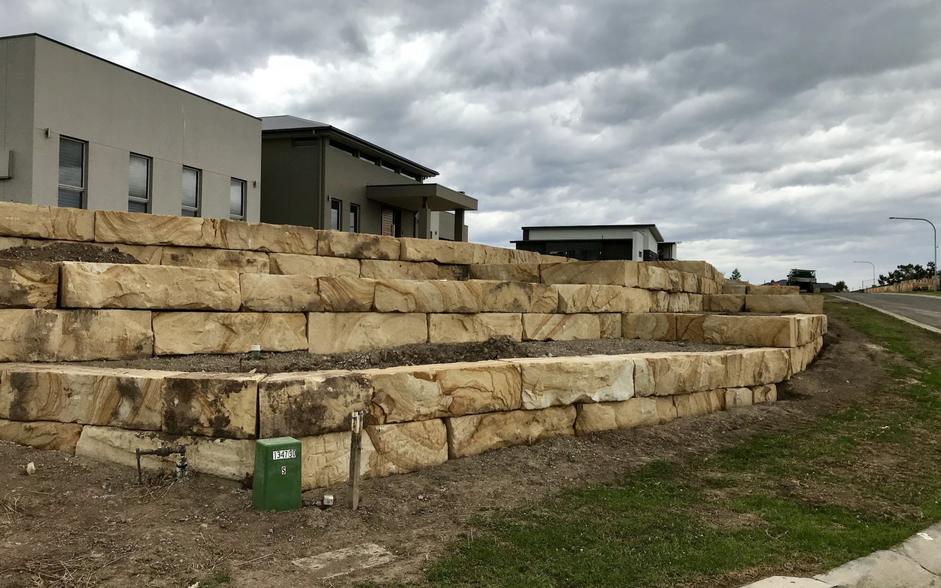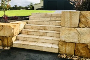 Now, this is the project we have been eagerly waiting to share with you. We like to call it, the sandstone standout! With quality Sandstone at the forefront of this design, this stunning home received much needed stylish and functional retaining walls, complete with the addition of some customised Travertine feature stairs. Although this project only involved two, core services, the before and after photos will show you just how much of a large scale project this was. Another quality and sophisticated project by our hardworking All In One team.